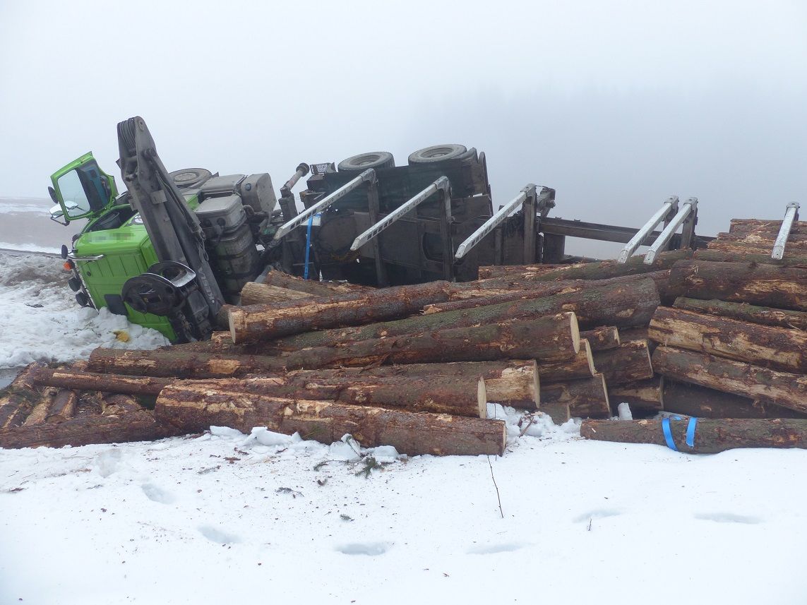 Na Rejvíze se převrátil plně naložený kamion dřevem