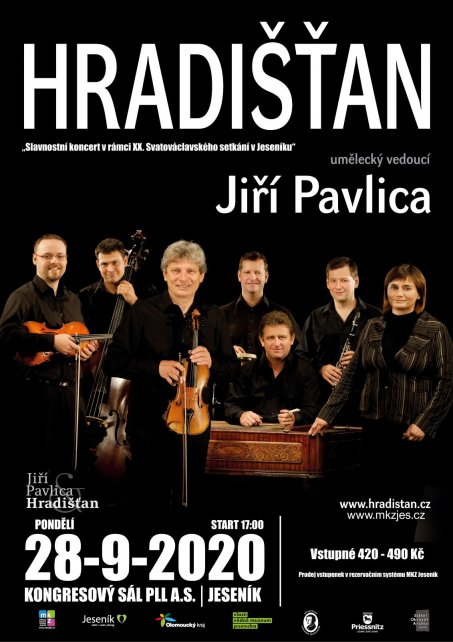 V pondělí 28.9.2020 se uskuteční koncert kapely HRADIŠŤAN & Jiřího Pavlici v rámci XX. Svatováclavského setkání v Jeseníku.
