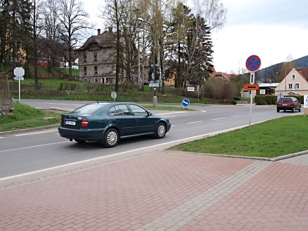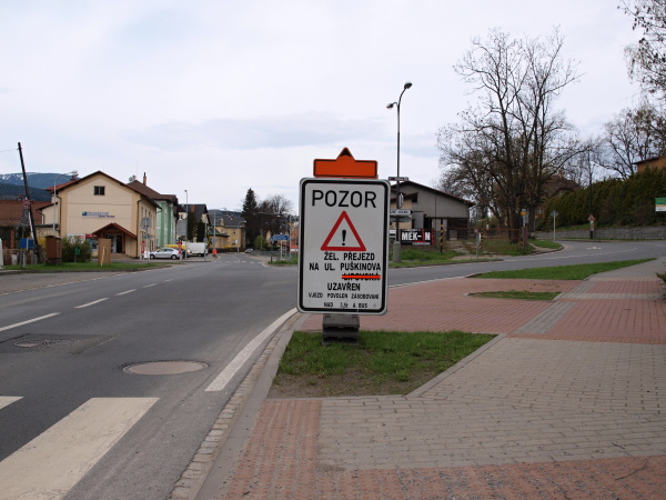 1. Trasa do jesenických lázní od Lipové (Od Prahy) – Upozornění „přejezd na ul. Puškinova uzavřen“, objízdná trasa vede rovně.