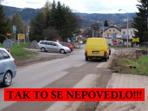 Jenže na největší nebezpečí číhající na řidiče této provizorní trasy jsme narazili až při krátké obchůzce na místě. Nákladní vozy nebo autobusy (často i osobáky), které jedou z lázní a využijí provizorní komunikaci kolem kolejí na ulici Lipovskou, vyjíždí přímo na přejezd v místě, kde nevidí na světelnou signalizaci. Ta je samozřejmě nyní mimo provoz, ale vlaky po železnici stále jezdí (v omezeném režimu). Proto byly z důvodu hrozícího nebezpečí, z obou směrů před přejezd osazeny dopravní značky „Stůj, dej přednost v jízdě“! Bohužel tito řidiči „stopku“ nevidí, a proto ji nemohou ani respektovat!