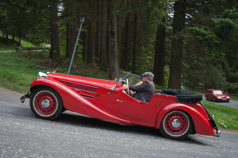 Co: Objektivem JŠ – Momentky ze vzpomínkové jízdy uspořádané Auto Moto Veterán Klubem Česká Ves k devadesátému výročí 1. Československé Tourist Trophy.