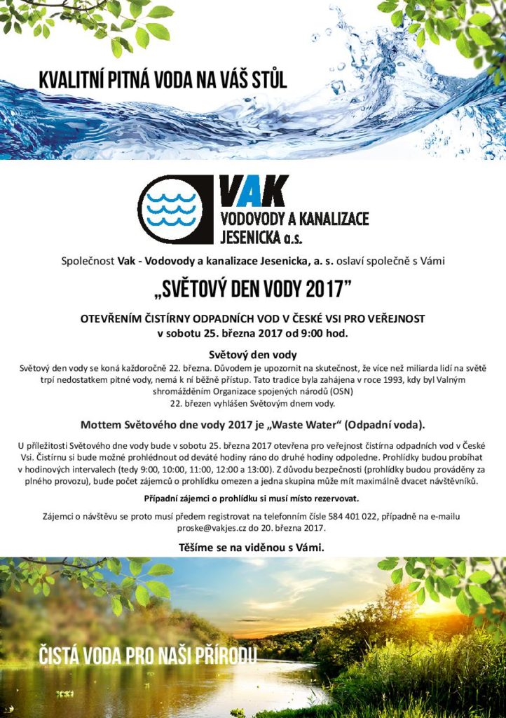 Více: http://www.vakjes.cz/novinky/55-svetovy-den-vody-2017-otevreni-cov-ceska-ves.html