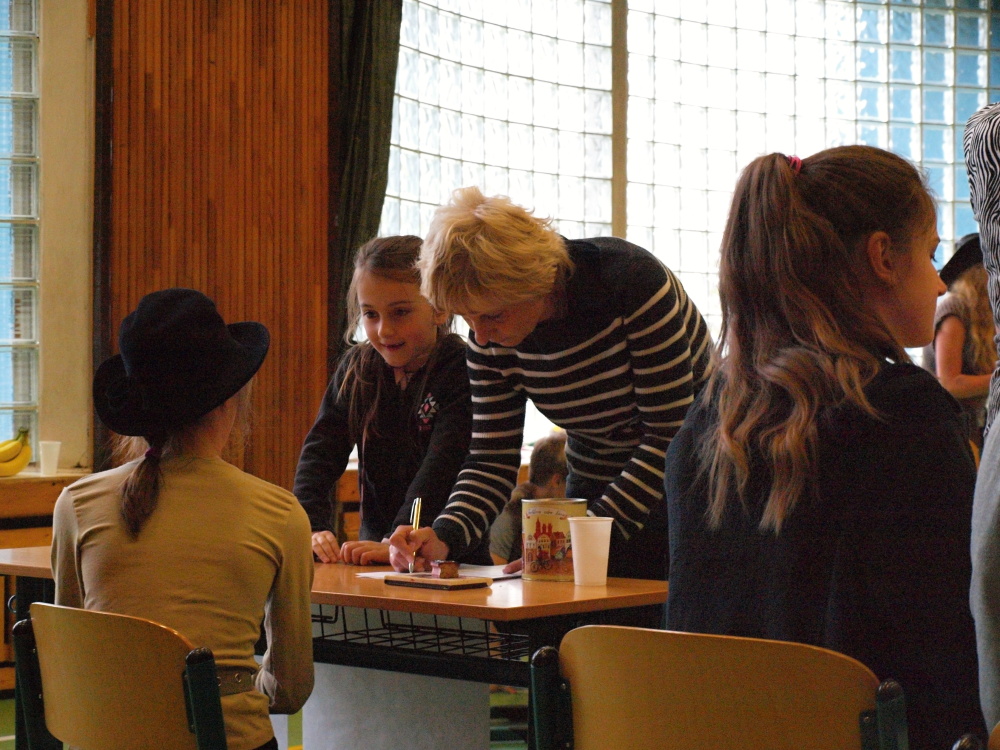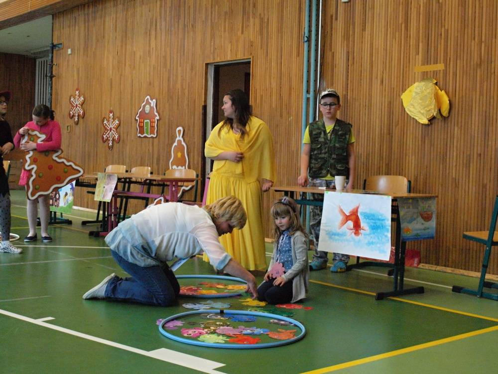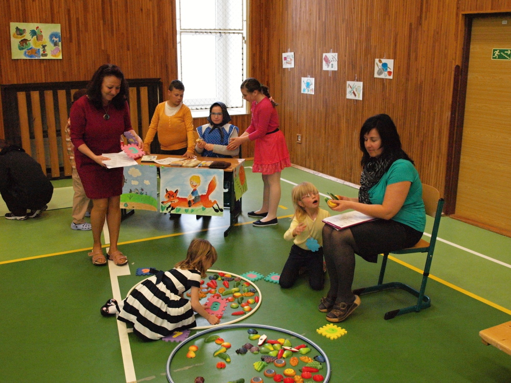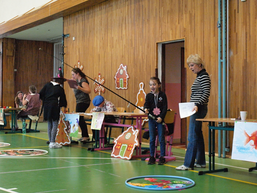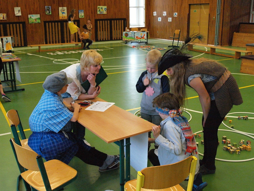 Obrazem: Zápis do prvních tříd pojali na budově Boženy Němcové stejně jako v loňském roce pohádkově. Děti, které se přišly zapsat, prošly tělocvičnou z pohádky do pohádky.