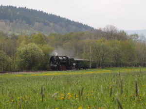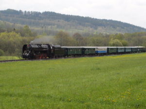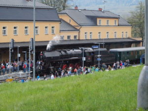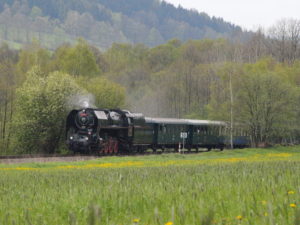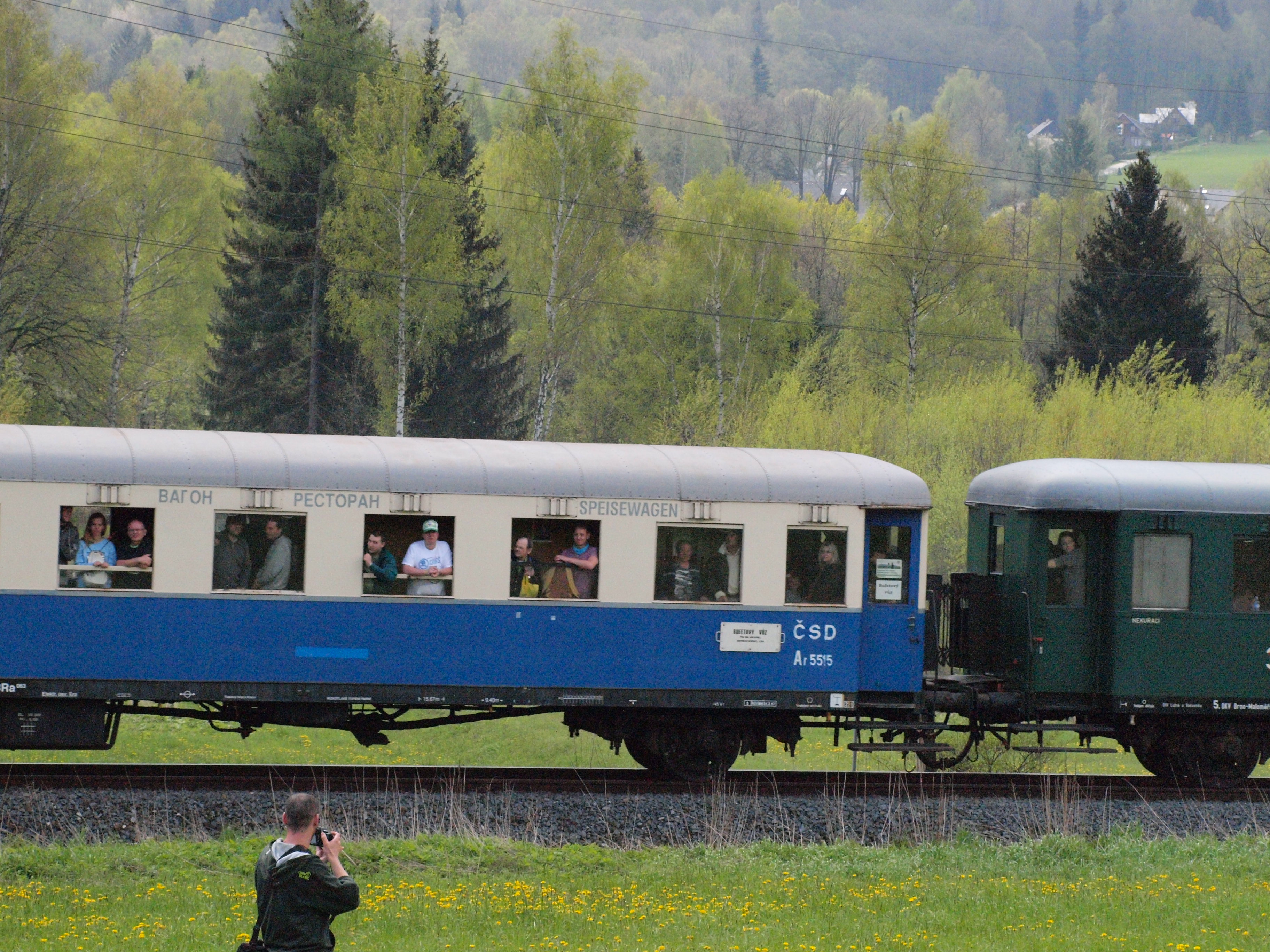 CO: Příjezd historického vlaku z Olomouce do Jeseníku, taženého parní lokomotivou Šlechtična, u příležitosti 170. zahájení lázeňské sezóny