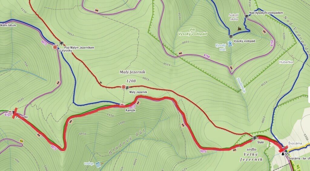 Pěší turisté mohou využít náhradní trasu po červené turistické značce přes Malý Jezerník nebo po modré značce Kamzík – Výrovka. Zbytek trasy z Petrovky na Červenohorské sedlo je přístupný.