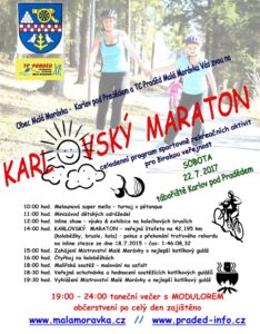 Malá Morávka|18. července 2017 – Obec Malá Morávka společně s TC Praděd připravili na sobotu 22. července celodenní program sportovně rekreačních aktivit pro širokou veřejnost: „Karlovský maraton“ proběhne v areálu tábořiště v Karlově pod Pradědem.