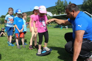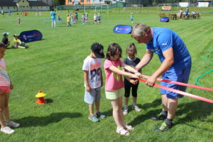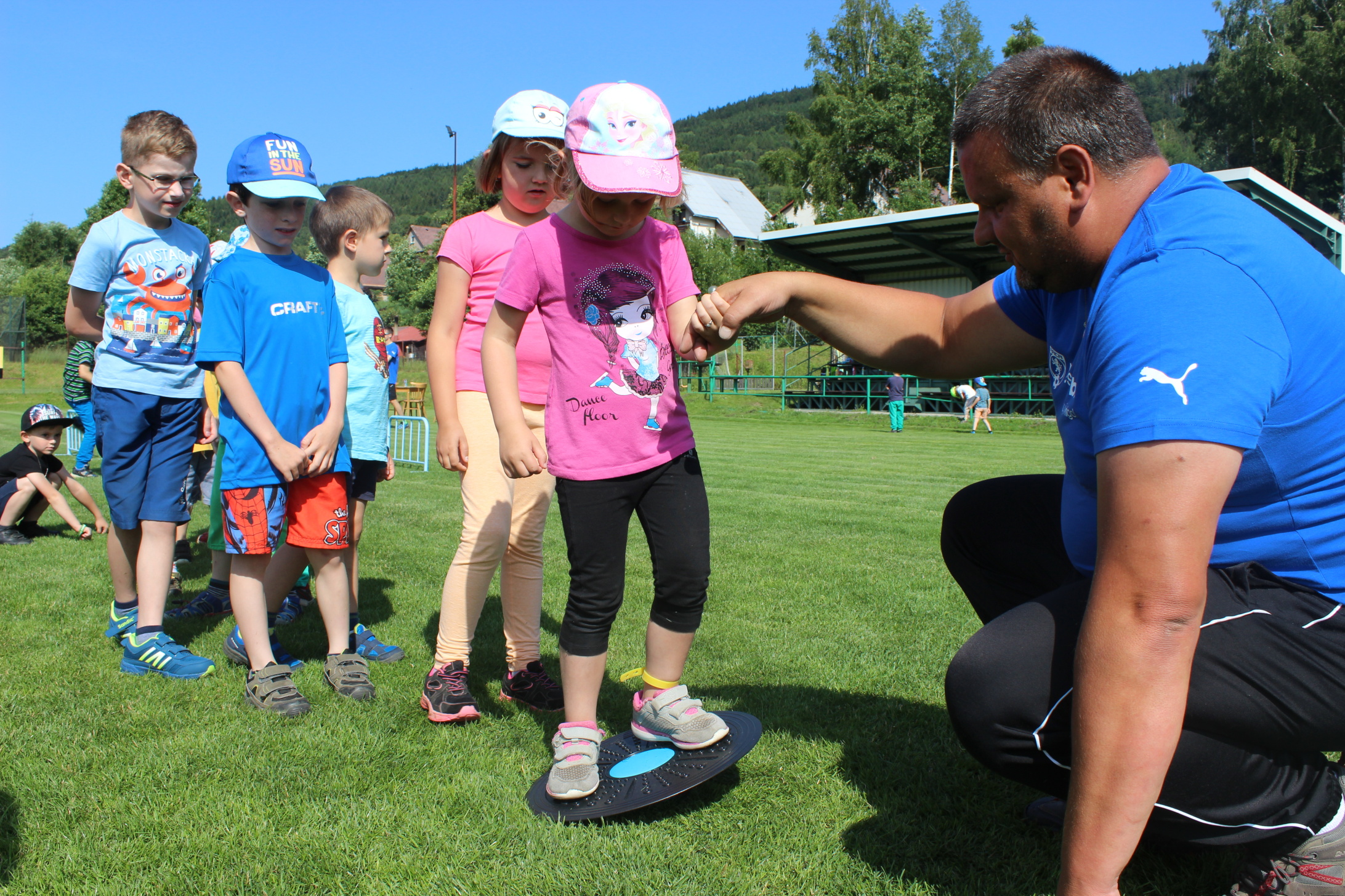 Sportovních stanovišť nachystali organizátoři celkem deset. Děti si vyzkoušely třeba slalom s balonem, střelbu na brány s panáky nebo držely rovnováhu na balanční desce. Do fotbálku se s nimi zapojily i paní učitelky. Vůbec nejoblíbenější disciplínou se však stalo přelézání překážek.