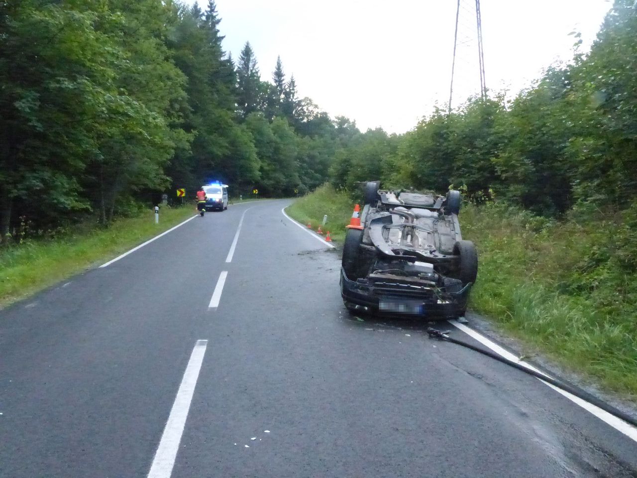 Krátce po třetí hodině odpoledne zamířili dopravní policisté do Lipové znovu. Tentokrát k havárii řidiče, jemuž měla cestu z Ramzové do Lipové zkomplikovat lesní zvěř, která mu měla v levotočivé zatáčce vběhnout před vozidlo. Na nastalou situaci řidič reagoval stržením řízení vlevo. Po tomto manévru vyjel mimo silnici do příkopu, kde se vozidlo přetočilo na střechu. Havárie se naštěstí obešla bez zranění. Škoda na vozidle byla předběžně vyčíslena na 50 tisíc korun.