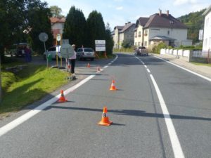 V úseku před semafory, které řídí dopravu na rekonstruované křižovatce, dojel pomalu jedoucí vůz zn. Opel Meriva. Čtyřiašedesátiletá řidička chtěla ještě před semaforem odbočit vlevo. Po celou dobu měla mít v činnosti levý ukazatel směru jízdy. I přesto 45letý řidič přejel „plnou“ čáru a začal vůz zn. Opel Meriva předjíždět. Vozy se střetly v prostoru křižovatky. Dopravní nehoda se obešla bez zranění. Dechové zkoušky na alkohol byly u obou řidičů negativní.