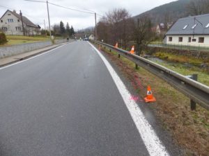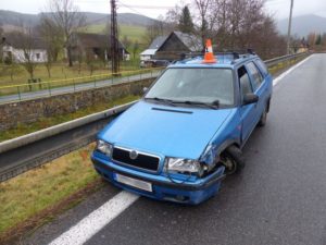 S vozem zn. Škoda Felicia jel ve směru na Jeseník. Během jízdy přejel s vozem do protisměru a narazil do právě projíždějícího vozu zn. Škoda Fabia. Po střetu strhl řízení a narazil do svodidel. Poté přejel na druhou stranu, kde narazil do kamenné zídky. Ani zde se vůz nezastavil. Znovu přejel do svého jízdního pruhu a zastavil se u svodidel. Po dopravní nehodě bylo zjevné, že mladý muž je pod vlivem alkoholu. Protože u něj nemohla být provedena dechová zkouška, byl u něj nařízen odběr krve. Prvotní testy vyšly pozitivně s naměřenou hodnotou přes 3 ‰ alkoholu. Dále policisté zjistili, že mladík má soudem vysloven zákaz řízení všech motorových vozidel až do října 2020. Způsobená škoda byla předběžně vyčíslena na 36.000 Kč.
