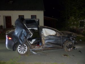 Necelou půl hodinu po půlnoci vyjeli do Bílého Potoku k havárii vozidla. S vozem značky Tesla tam v důsledku nepřiměřené rychlosti poté, co nevybral levotočivou zatáčku, narazil 34letý řidič nejprve do oplocení a dřevin a následně také do zdiva přilehlého domu. Havárie si vyžádala tři lehká zranění. Řidič zůstal po nárazu ve vozidle zaklíněn. Na pomoc mu přispěchali přítomní svědci. Samotný řidič s hlídkou nespolupracoval, odmítl se podrobit jak orientační dechové zkoušce, tak lékařskému vyšetření spojenému s odběrem krve. Havarované vozidlo policisté zajistili a řidiči zadrželi jeho řidičský průkaz. Škoda způsobená při havárii byla předběžně vyčíslena na dva miliony korun. Veškerými okolnostmi, za nichž k této havárii došlo, se nadále zabýváme. (V příloze přikládám fotografie).