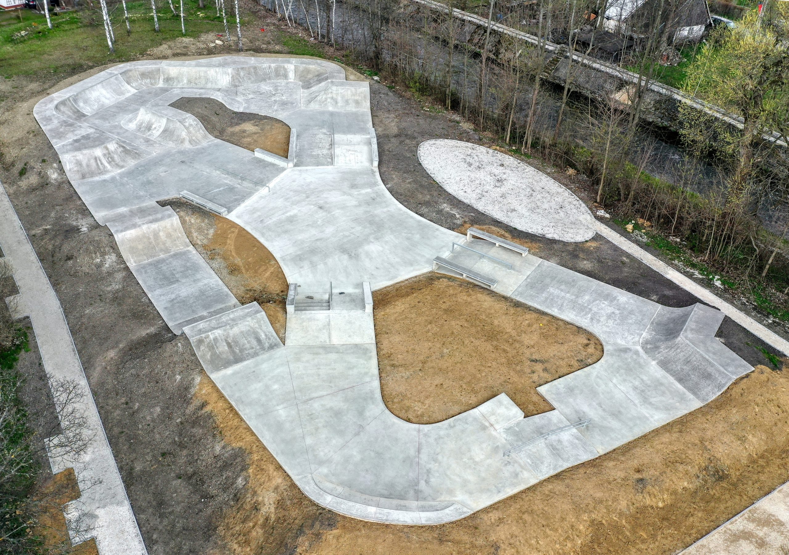 Skatepark má podobu betonového monolitu, jelikož beton je dlouhodobě nejvhodnější technologickou variantou pro výstavbu venkovních skateparků s minimálními dodatečnými náklady na opravy. Vybudovány byly nové zpevněné plochy, vysazena zeleň a celé sportoviště bylo vybaveno mobiliářem, jako například lavičkami, stojany na kola a odpadkovými koši.