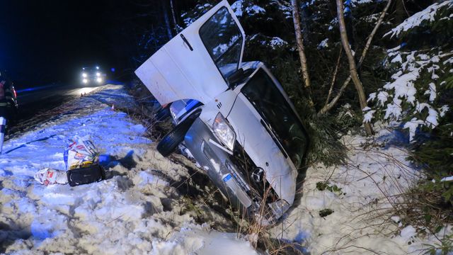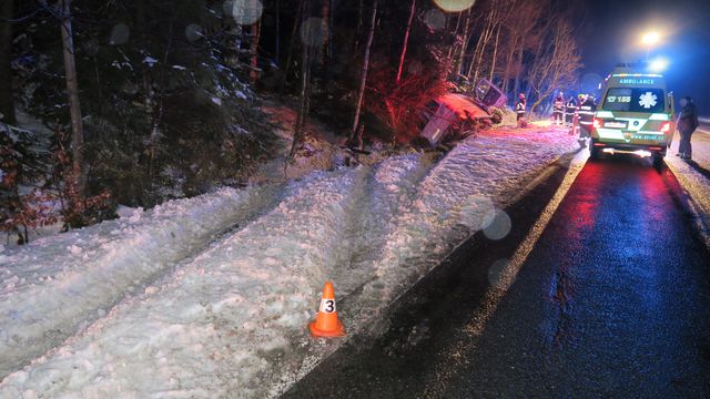 V pondělí 13. prosince před šestou hodinou ráno havaroval nedaleko Zlatých Hor 64letý řidič s vozem Mercedes – Benz Sprinter. Muž jel od Heřmanovic směrem na Zlaté Hory. V důsledku nepřiměřené rychlosti, kterou nepřizpůsobil stavebnímu a dopravně technickému stavu komunikace a povětrnostním podmínkám, po projetí pravotočivé zatáčky dostal s vozidlem smyk. Ten nezvládl, takže auto vyjelo mimo silnici do příkopu, kde se částečně převrátilo na bok. Z havárie řidič vyvázl bez zranění. Vznikla pouze hmotná škoda na vozidle v předběžné výši 50 tisíc korun. Požití alkoholických nápojů před jízdou policisté u řidiče vyloučili dechovou zkouškou.