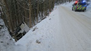 Vjela na pravou krajnici, která vůz stáhla mimo silnici. Auto sjelo bokem do prudkého srázu, kde se otočilo na střechu a zůstalo stát zapřené o vzrostlé stromy. Při havárii nebyl nikdo zraněn. Alkohol byl u řidičky vyloučen dechovou zkouškou. Škoda na autě byla odhadnutá na 30 tisíc korun. Okolnosti nehody jsou předmětem dalšího šetření.