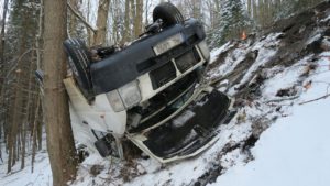 Foto: Řidička z hrozivě vypadající nehody vyvázla bez zranění. Ve středu 22. prosince kolem čtrnácté hodiny projížděla 45letá řidička s nákladním vozidlem tovární značky Volkswagen LT 35 po silnici II třídy číslo 453. Žena jela ve směru od Rejvízu na Jeseník.