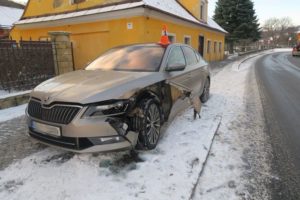 Osobní vůz v ulici Jánského narazil do nákladního vozidla zajišťujícího údržbu komunikací. Osmadvacetiletý řidič jel ve vozidle Škoda Superb směrem na Písečnou. Protože nepřizpůsobil rychlost jízdy zejména povětrnostním podmínkám, dostal při průjezdu zatáčkou smyk. Jeho vůz najel nejprve na pravou krajnici, kde narazil bokem do svodidel. Od nich se odrazil do protisměrného jízdního pruhu a zde přední částí narazil do radlice sněžného pluhu. Při nehodě nebyl nikdo zraněn. Alkohol u obou řidičů vyloučily dechové zkoušky, ale policisté zjistili, že na osobním automobilu jsou letní pneumatiky. Škoda vznikla pouze na superbu, a to v předběžné výši 200 tisíc korun. Nehodu vyřešili na místě uložením pokuty v příkazním řízení.