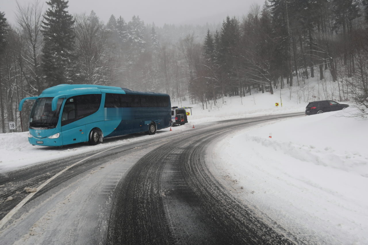 V neděli 6. února dopoledne vyjížděli jeseničtí dopravní policisté k nehodě osobního vozidla a autobusu na silnici I/44 směrem na Červenohorské sedlo.