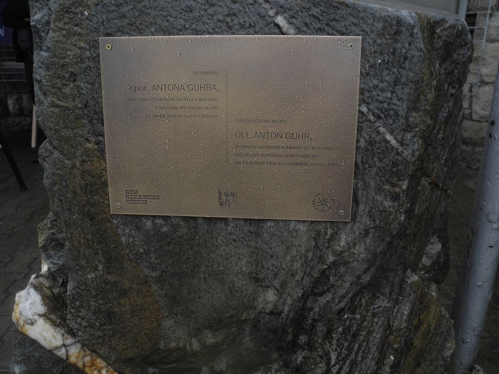 V sobotu 13. srpna proběhlo před budovou Obvodního oddělení Policie ČR ve Zlatých Horách slavnostní odhalení pamětní desky nadporučíku četnictva Antonu Guhrovi, který byl v tomto městě zastřelen při nepokojích v roce 1920. I přes nepříznivé počasí se pietního aktu zúčastnilo velké množství veřejnosti.