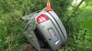Po vjetí na nezpevněnou krajnici skončil s autem na střeše