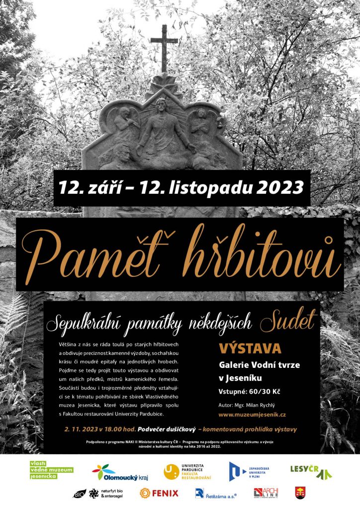 Většina z nás se ráda toulá po starých hřbitovech a obdivuje preciznost kamenné výzdoby, sochařskou krásu či moudré epitafy na jednotlivých hrobech. Pojďme se tedy projít touto výstavou a obdivovat um našich předků, mistrů kamenického řemesla. Součástí budou i trojrozměrné předměty vztahující se k tématu pohřbívání ze sbírek Vlastivědného muzea Jesenicka, které výstavu připravilo spolu s Fakultou restaurování Univerzity Pardubice.