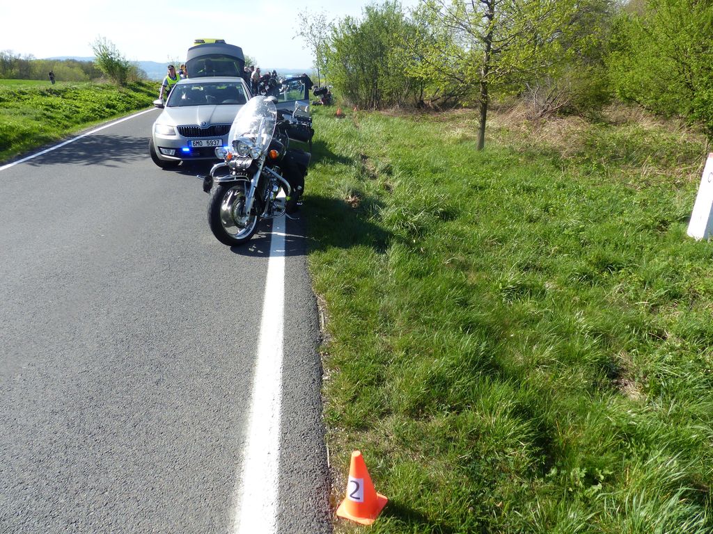 Včerejšího dne před půl třetí odpoledne vyjížděli policisté k dopravní nehodě motorkáře, ke které došlo na silnici II. třídy č. 457 v katastru obce Horní Heřmanice u Bernartic. Podle zjištěných informací se šestapadesátiletému řidiči během jízdy od města Vidnava při průjezdu levotočivou zatáčkou pravděpodobně zasekla plynová páčka, kvůli čemuž vyjel vpravo na travnatou krajnici vozovky. Následně s motorkou narazil do kmene pokáceného stromu, čímž došlo k vymrštění motorkáře. Muž byl z místa nehody transportován leteckou záchrannou službou do Fakultní nemocnice v Olomouci k ošetření.