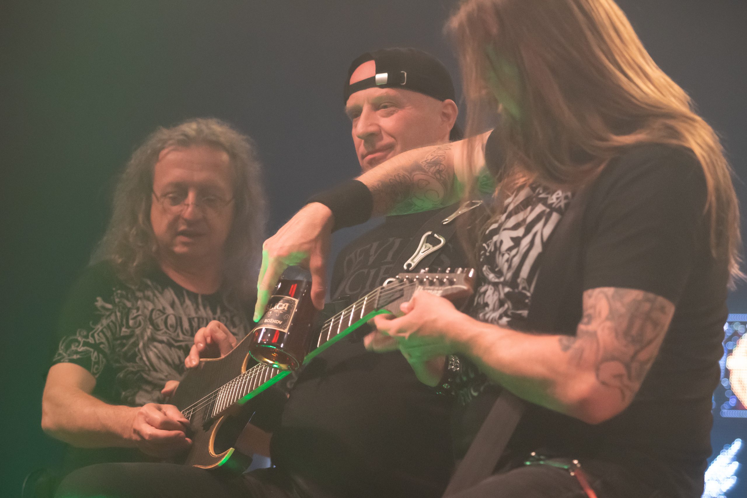 Ale pojďme zpět ke koncertu. Nejprve vystoupil Alkehol, který ne zcela vyprodaný sál patřičně rozehřál, a po hodině a půl uvolnil podium pro Arakain. Jako totální hudební neznalec, mám dvoubodovou stupnici hodnocení – líbí x nelíbí, a mně se večerní vystoupení obou kapel líbilo. A pro ty, co koncert nenavštívili, malá galerie fotografií.