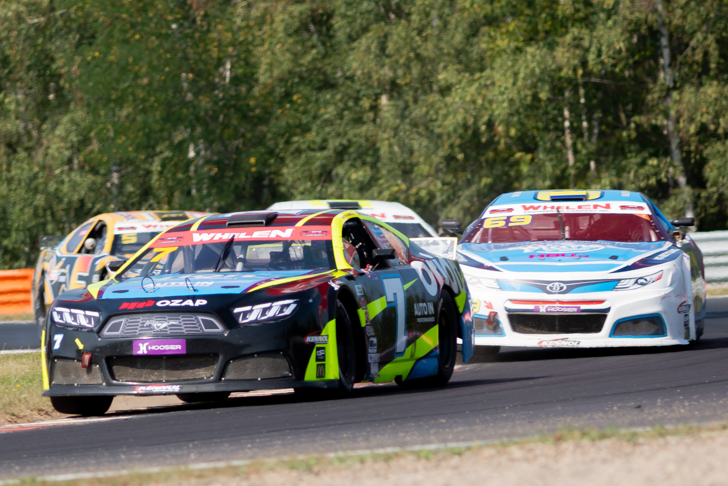 #7 Martin Doubek (CZE) Ford Mustang v NASCAR 2 drží své soupeře za sebou.j