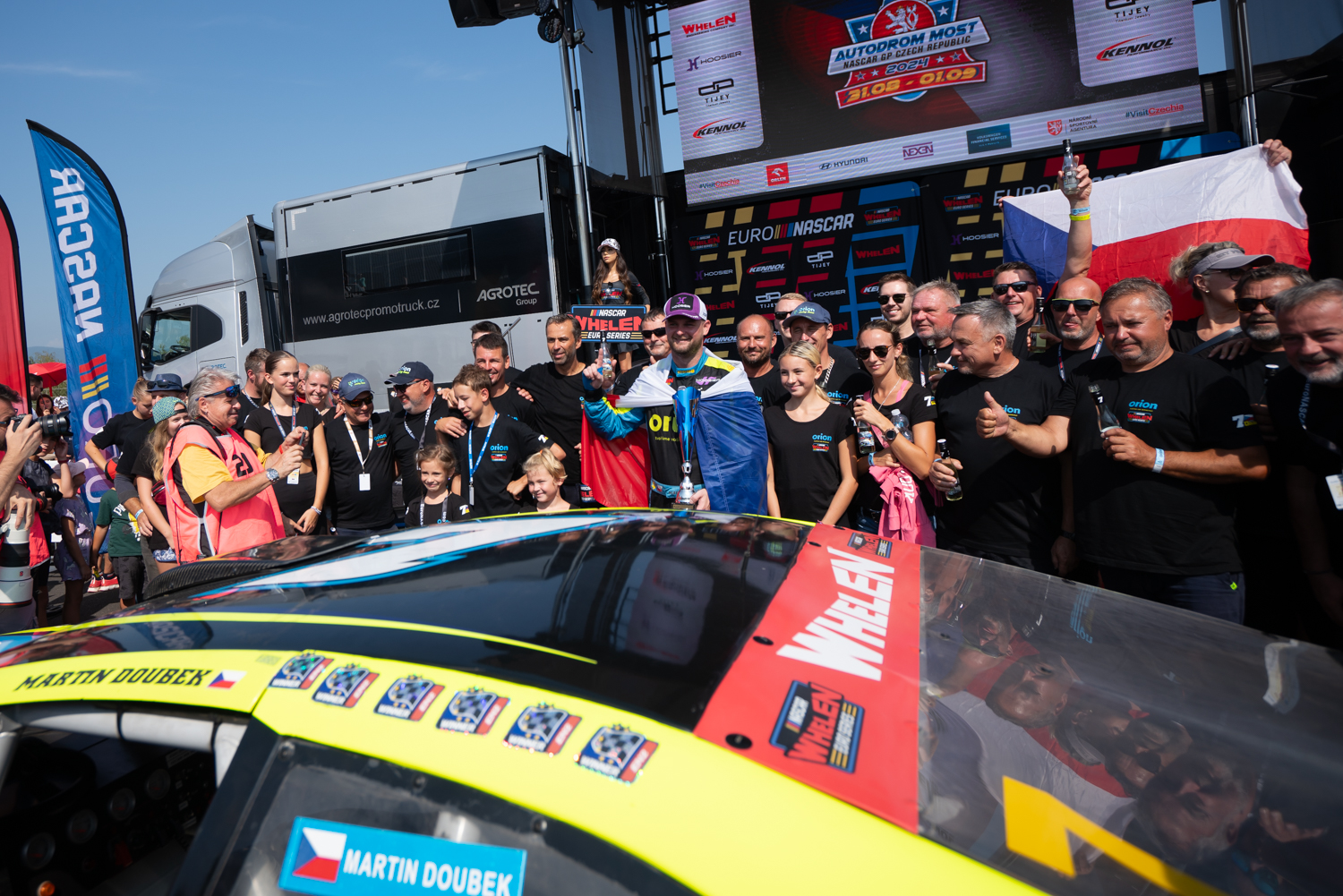 #7 Martin Doubek (CZE) Ford Mustang v NASCAR 2 oslava vítězství.