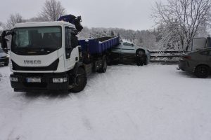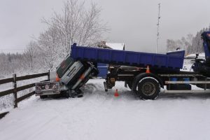 Jeho 46letý řidič nepřizpůsobil rychlost jízdy stavu komunikace. Na namrzlé silnici vozidlo dostalo smyk, přetočilo se přes střechu a zastavilo se až o oplocení areálu firmy. Nehoda se obešla bez zranění. Provedená dechová zkouška vyloučila přítomnost alkoholu. Způsobená hmotná škoda byla předběžně vyčíslena na 55 tisíc korun.