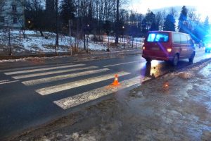 6. ledna v sedm hodin ráno došlo v Jeseníku na ulici Březinova k dopravní nehodě. Podle zjištěných informací 50letý řidič vozidla Volkswagen přehlédl 22letou chodkyni, která přecházela po přechodu pro chodce. Vozidlo ženu zachytilo pravým předním obrysem v momentě, kdy opouštěla přechod. Mladá žena utrpěla zranění, se kterým byla vozidlem RZS převezena do jesenické nemocnice k ošetření. Provedené dechové zkoušky vyloučily přítomnost alkoholu. Lustrací řidiče policisté zjistili, že má platnou blokaci řidičského oprávnění. Nehoda je předmětem dalšího šetření.