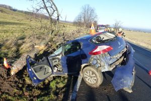 K další nehodě jsme vyjížděli před 9. hodinou, ke které došlo na silnici č. I/60 mezi obcemi Vlčice a Uhelná. Podle zjištěných informací 68letý řidič vozidla Renault jedoucí ve směru od obce Vlčice nepřizpůsobil rychlost jízdy především svým schopnostem a povětrnostním podmínkám. Na zledovatělé vozovce dostal smyk, vjel do příkopu a narazil do stromu. Odborná dechová zkouška vyloučila přítomnost alkoholu. Řidič byl na místě v péči ZZS. Způsobená hmotná škoda byla předběžně vyčíslena na 100 tisíc korun.
