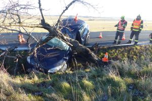Vlivem zasněžené vozovky havaroval do stromu