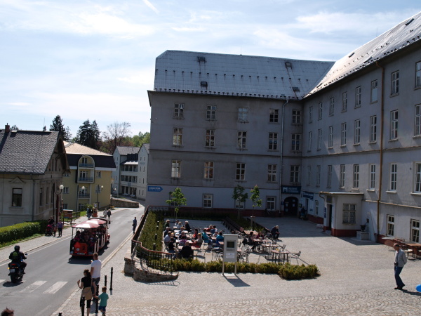 Závěrem si musím trochu postesknout, že z dob minulých mi v lázních schází snad jediné, dřevěná budova před Hradem, která dokázala rozbít holou několikapatrovou stěnu „hradu“. Prostranství sice prošlo rekonstrukcí a zmizely nevzhledné plastové stolky na drolícím se betonovém podkladu, ale současné provedení zahrádky mi do areálu horských lázní, tak nějak nesedí.