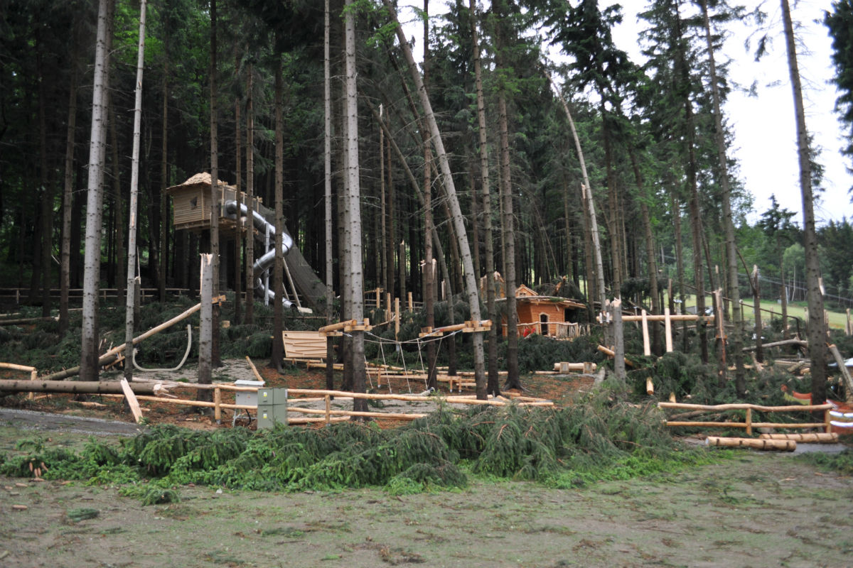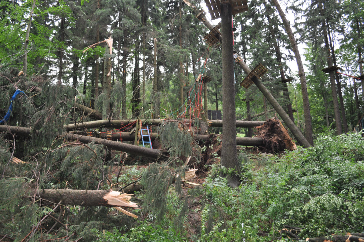 - V Lanovém parku byla poškozena většina okruhů s překážkami. Některé vážně, některé naštěstí jen lehce, proto by díky intenzivním odklízecím pracem a následným opravám měly být do 14 dnů zprovozněny 4 okruhy včetně nejlehčího dětského.