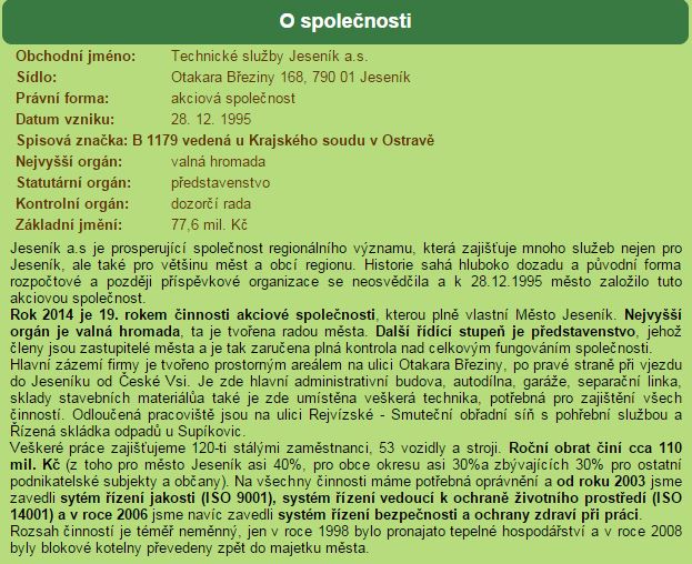 Dozorčí rada je povinna jednat v zájmu společnosti. Dospěla k závěru, že za situace, kdy představenstvo jedná tak, jak jedná a při zohlednění současné politické situace na jesenické radnici bude nejefektivnějším způsobem řešení věci, předložení informací zastupitelstvu. Technické služby Jeseník, a.s. jsou společností, kterou stoprocentně vlastní město Jeseník a pokud někdo spatřuje něco špatného v tom, že o dění v takové společnosti chce dozorčí rada informovat zastupitele, pak tím bezděky potvrzuje, že něco v pořádku není.