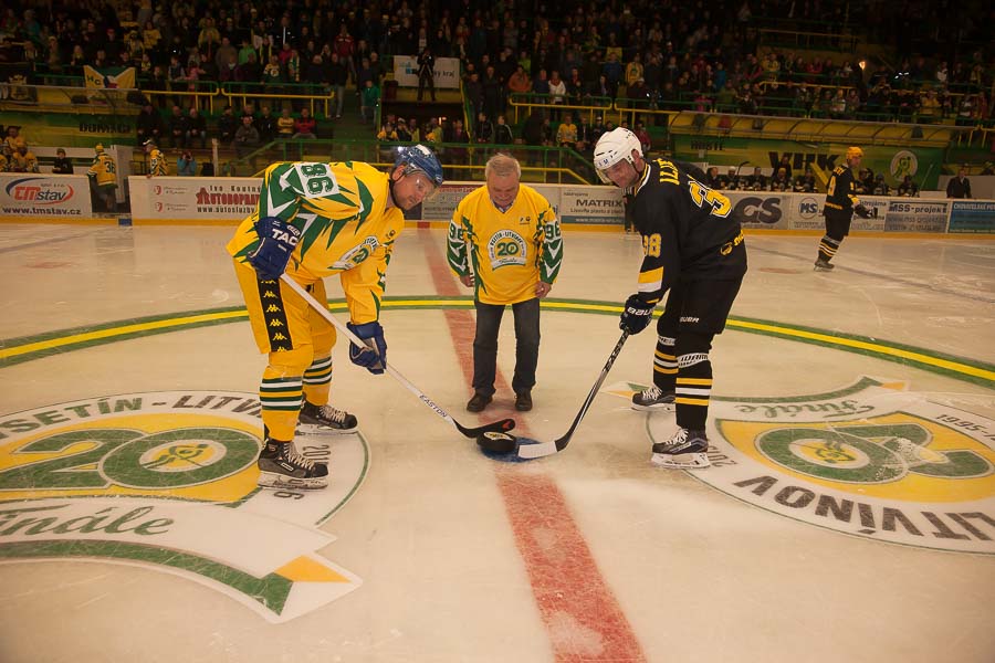 „Když se řekne veterán, většina z nás si představí nablýskaný automobil s rokem narození v první polovině 20. století. Veteránem se však nazývá automobil starší již dvaceti let. Stejně se tak dají označit účastníci hokejové exhibice – v repríze finálového utkání o mistra hokejové extraligy po dvaceti letech. Kdysi úspěšný vsetínský hokejový tým Petra Vsetín, který v devadesátých letech vládl českému hokeji, si totiž u příležitosti dvacátého výročí zisku druhého titulu pozval tehdejšího finálového soupeře Chemopetrol Litvínov, aby si po dvaceti letech zopakovaly boj o titul. A tak fanoušci mohli na ledě opět vidět známé tváře tehdejších vsetínských hvězd jako Pavel Augusta, Alexej Jaškin, Radovan Biegel Jan Srdínko či hvězd z řad Litvínova jako Robert Kysela, Zdeněk Orct, Jan Alinč a dalších. Samozřejmě nesměl chybět i strůjce vsetínských úspěchů trenér Horst Valášek. A u velké slávy nesměla chybět i dvorní kapela „Valašského království“ Fleret,“ váš Jan ŠKODA.