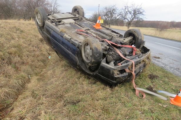 „V tomto případě mladý řidič ve voze zn. VW Golf také nepřizpůsobil rychlost svým schopnostem ani stavu povrchu komunikace. Na zledovatělé silnici se s vozidlem dostal do smyku a sjel do příkopu. Když vůz narazil do hrany příkopu, převrátil se na střechu. Při ohledání vozidla kolegové zjistili, že jsou na něm umístěny letní pneumatiky,“ popsala další nehudu policejní mluvčí.