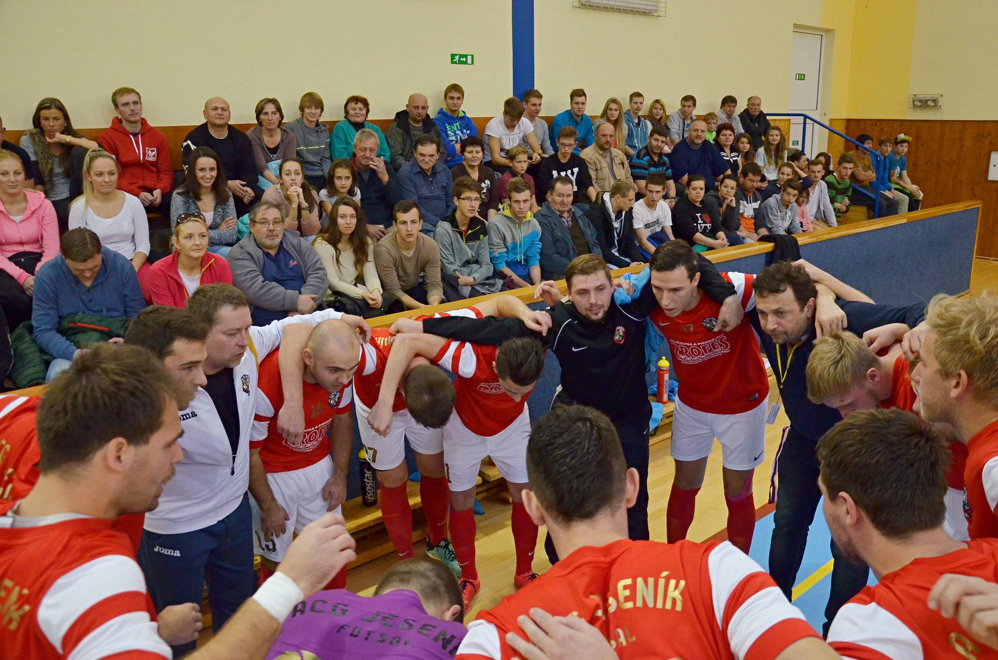 Jeseničtí futsalisté v posledních šestnácti domácích zápasech neztratili ani bod a pokud se jim podaří tuto sérii prodloužit o další tři výhry, poputuje pohár za druholigové prvenství do nejsevernější sportovní haly Moravy.