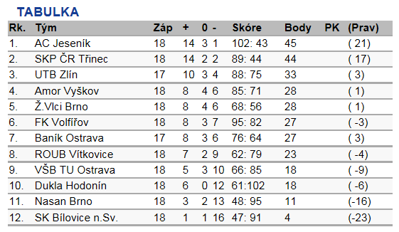 Přijďte podpořit jesenické hráče ke zdolání další překážky v cestě za druholigovým prvenstvím. Zápas začíná v SH Mikulovice v pátek od 20.00hod.. Vstup je volný, občerstvení v hale zajištěno.