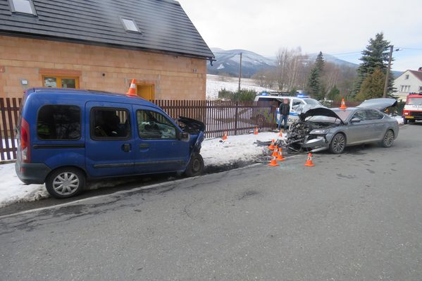 V Domašově čelně vrazilo Kangoo do Škody Superb. Jedna osoba se při kolizi těžce zranila a škoda přesáhla 1 200 000 korun