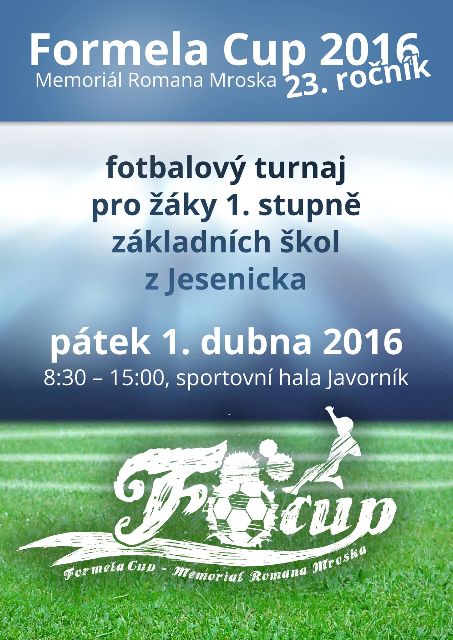 „Turnaje se zúčastní 11 škol z Jesenicka, tedy přes 100 místních děti do 12 let. Od letošního roku byl turnaj přejmenován na Formela Cup – Memoriál Romana Mroska, abychom tak vzdali hold člověku, který turnaj v roce 1994 založil, staral se o něj a vedl místní malé kluky a holky k lásce ku sportu,“ vysvětlil hlavní organizátor zajímavé akce Jan Mrosek a dodal: „Tímto bych rád všechny srdečně na akci pozval.“